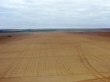 This machine picking up windrowed stone. The machine can also dig in and pick up stone directly from prepared ground.
